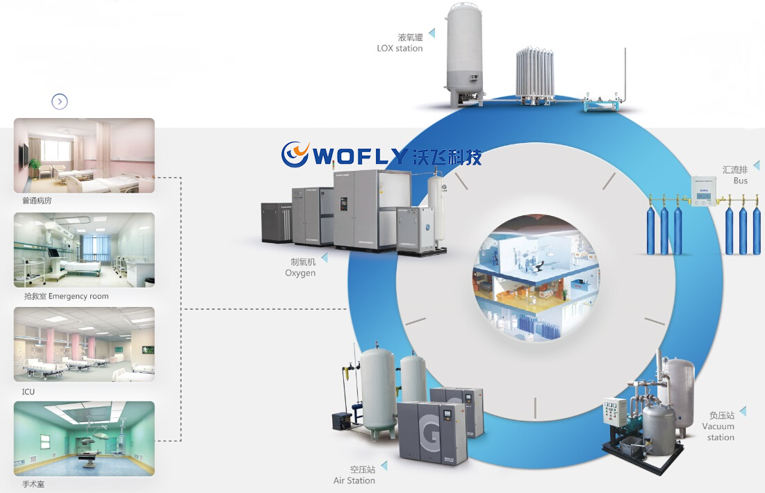 為了保證疫情期間醫(yī)用氧氣供應(yīng),沃飛科技暢通供氧“生命線”,為醫(yī)院提供從技術(shù)咨詢、整體規(guī)劃、集中供氣系統(tǒng)設(shè)計(jì)、選定設(shè)備、預(yù)制組件、項(xiàng)目現(xiàn)場(chǎng)安裝建設(shè)、整體系統(tǒng)檢測(cè)等全套工程技術(shù)服務(wù)和配套產(chǎn)品與一體的交鑰匙式服務(wù),其集中供氧系統(tǒng)配置有二級(jí)調(diào)壓系統(tǒng)和氣體管道,可以按照醫(yī)院需求為病房或?qū)嶒?yàn)室的用氣使用點(diǎn)輸出穩(wěn)定的氣體,通過(guò)輸氧管路,便捷地將氧氣輸送至醫(yī)院病房、急救室、觀察室和手術(shù)室等科室,優(yōu)于傳統(tǒng)鋼瓶供氧的方式,更好地解決醫(yī)療用氧的需求。例如,制氧系統(tǒng)輸送的氧氣能更好地配合呼吸機(jī)使用,滿足呼吸機(jī)的連續(xù)開(kāi)機(jī),高流量、連續(xù)不斷地供給氧氣的要求。