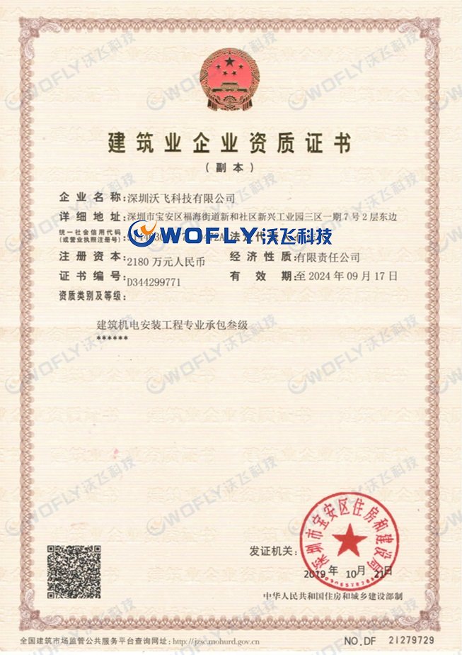 沃飛具有國(guó)家建筑機(jī)電安裝專業(yè)承包資質(zhì),國(guó)家安全生產(chǎn)許可證,GC2壓力管道安裝資質(zhì)。